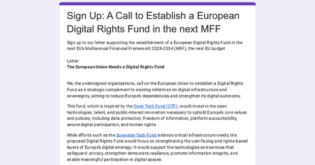 Sign Up: A Call to Establish a European Digital Rights Fund in the next MFF