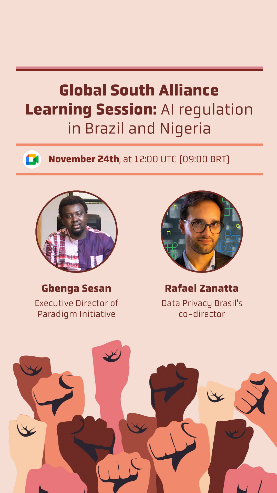 [globalsouthdata] [GSA] Learning session on AI Legislative Proposals in Brazil and Nigeria – Nov 24, 12:00 UTC